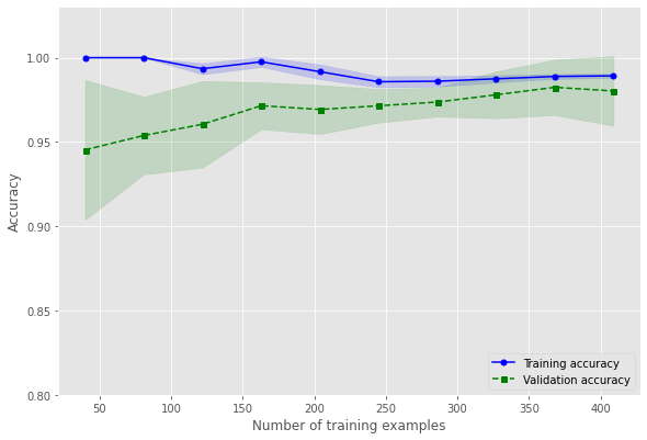 train_sizes, train_scores, test_scores = learning_curve(estimator=pipe_lr,